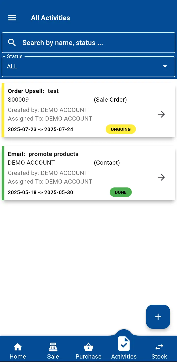 Enter code 1830 given for a demo account user to explore features of the app and get to know the solution the mobile application can bring to your business.